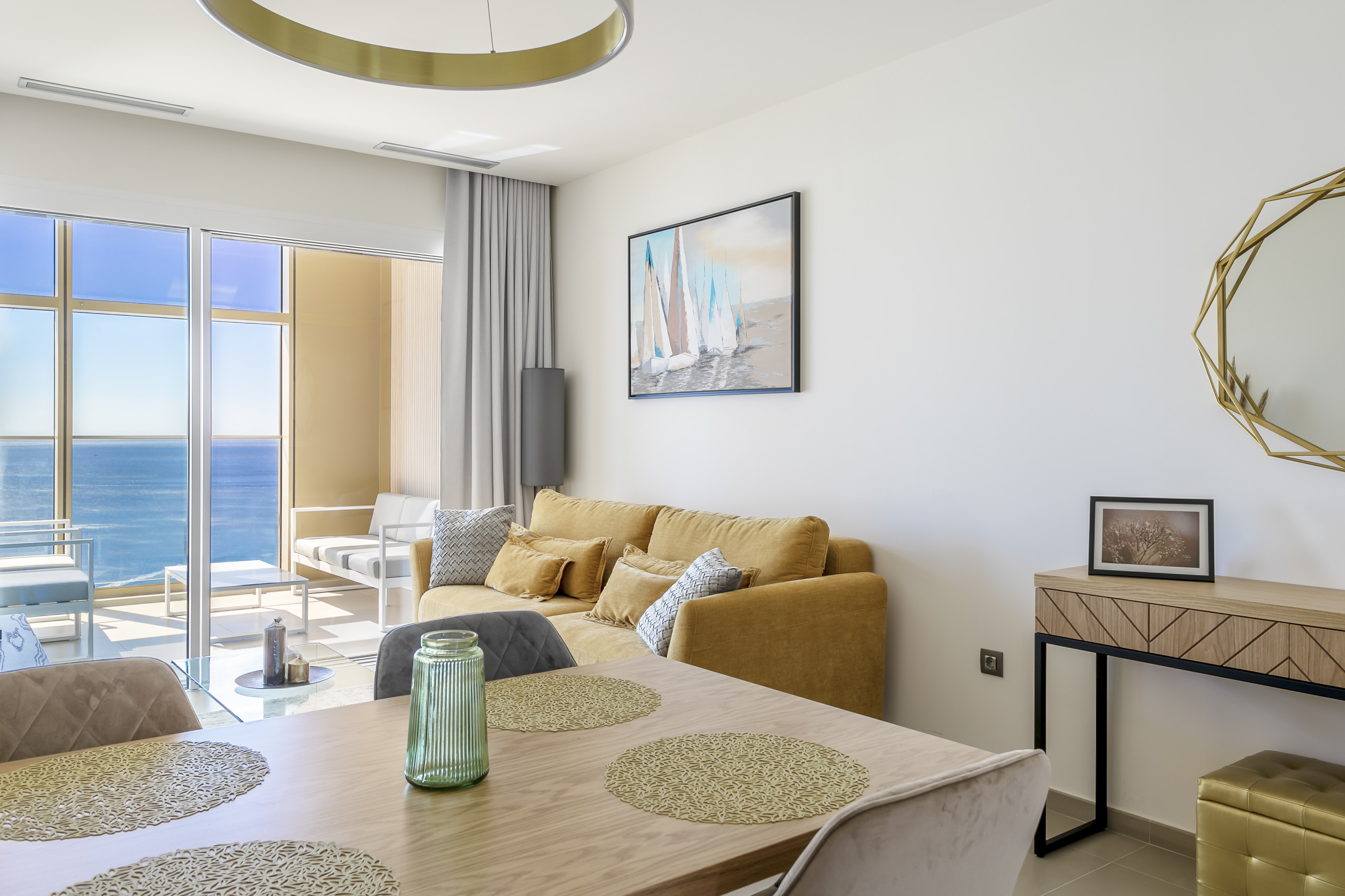Disfruta de unas vistas panorámicas al mar Mediterráneo desde casi todos los rincones de la vivienda. Situado a solo 200 metros de la tranquila Playa de Poniente, este apartamento combina lujo, confort y exclusividad en un entorno inmejorable.