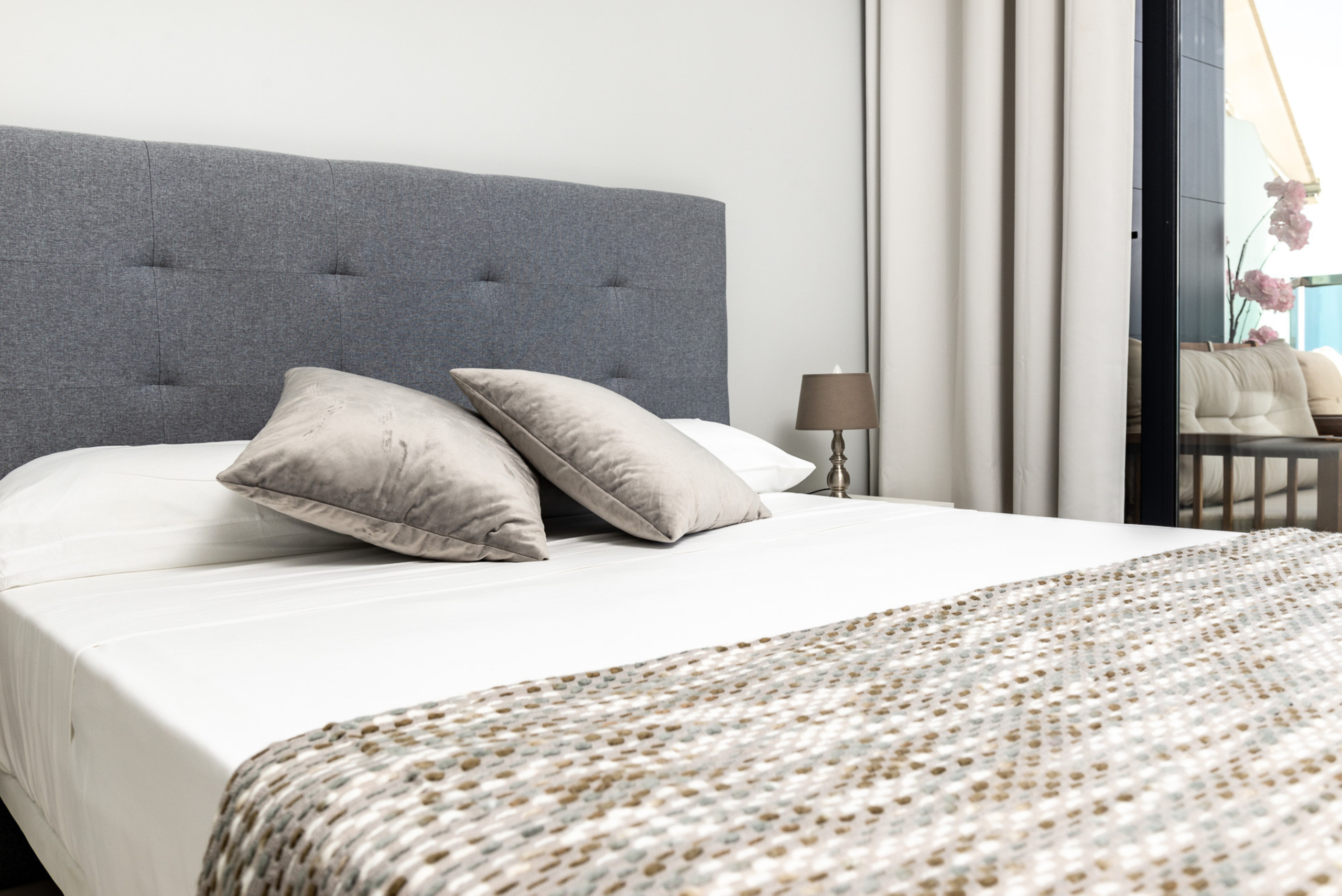 Located on the very edge of a tranquil stretch of white sand beach, SUNRISE Benidorm beachfront apartment stands out for their modern designer façades with slick minimalist lines that exude luxury from every angle.