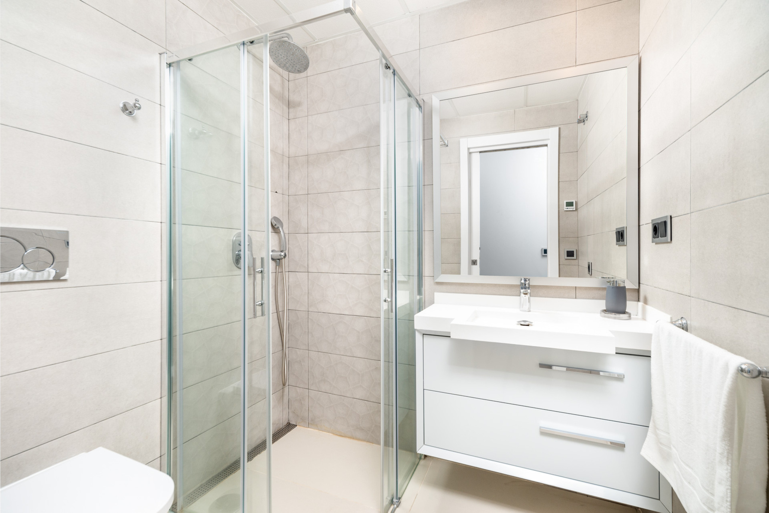 The modern bathrooms feature an invigorating rainfall shower as well as a hand shower unit.