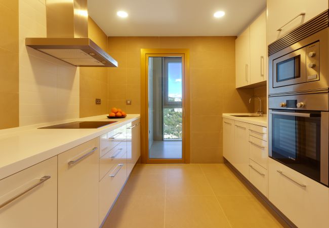 Piscina, vistas del mar y la montaña, terraza propia y las de arriba con yacuzzi piscina cubierta y gimnasio, parking amplio y cubierto, atención de los socorristas, recinto vigilado, sombrillas y piso amplio y equipado, y sobretodo la gran atención personalizada de Costa activa rentals ej cambio de sábanas porque fuimos 2 semanas.