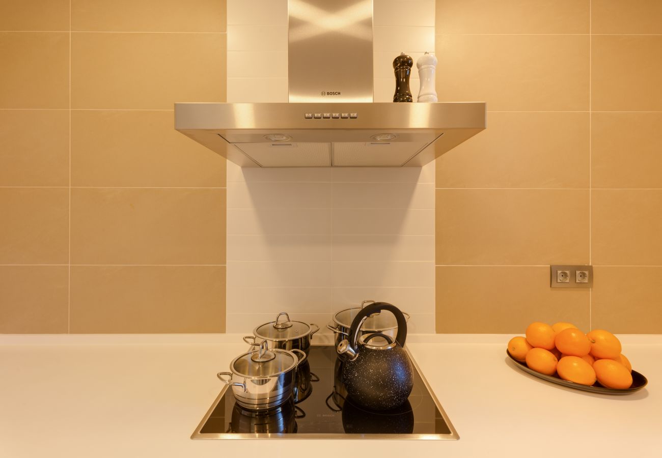 Отдельная кухня, оснащена индукционной плитой, оборудовано холодильник, микроволновая печь, духовка, морозильная камера, посудомоечная машина, столовые приборы, кухонная утварь, кофеварка, тостер, Чайник и Соковыжималка.