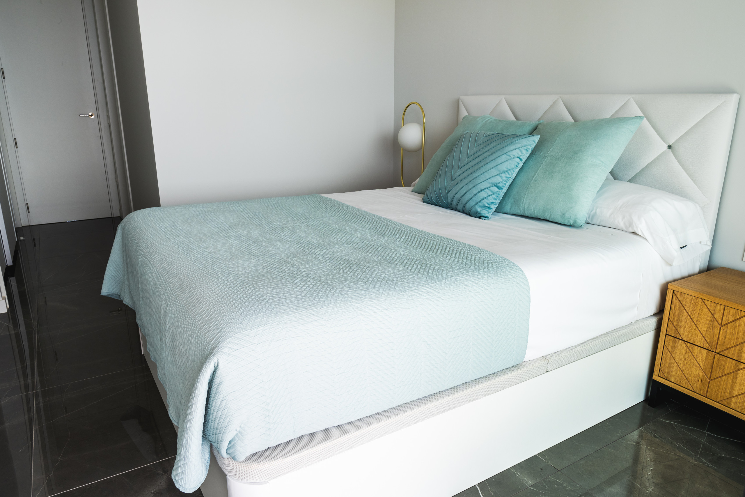апартаменты в Бенидорм / Benidorm 2 количество спален вместимостью на 6 чел (max. 4 взрослых). Проживание из 100 кв.м. Размещение имеет 24 кв.м террасы, стиральная машина, утюг, Доступ в интернет (wi-fi), Детская прощадка, Корт для паддл-тенниса, Тренажерный зал, Сауна, Джакузи, Спа, система отопления, систему кондиционирования во всем помещении, бассейн детский бассейн жилого комплекса, закрытый бассейн жилого комплекса, гараж в этом же здании, 1 телевизор. Кухня, совмещенная с залом, оснащена индукционной плитой, оборудовано холодильник, микроволновая печь, духовка, морозильная камера, посудомоечная машина, столовые приборы, кухонная утварь, кофеварка, тостер, Чайник и Соковыжималка.